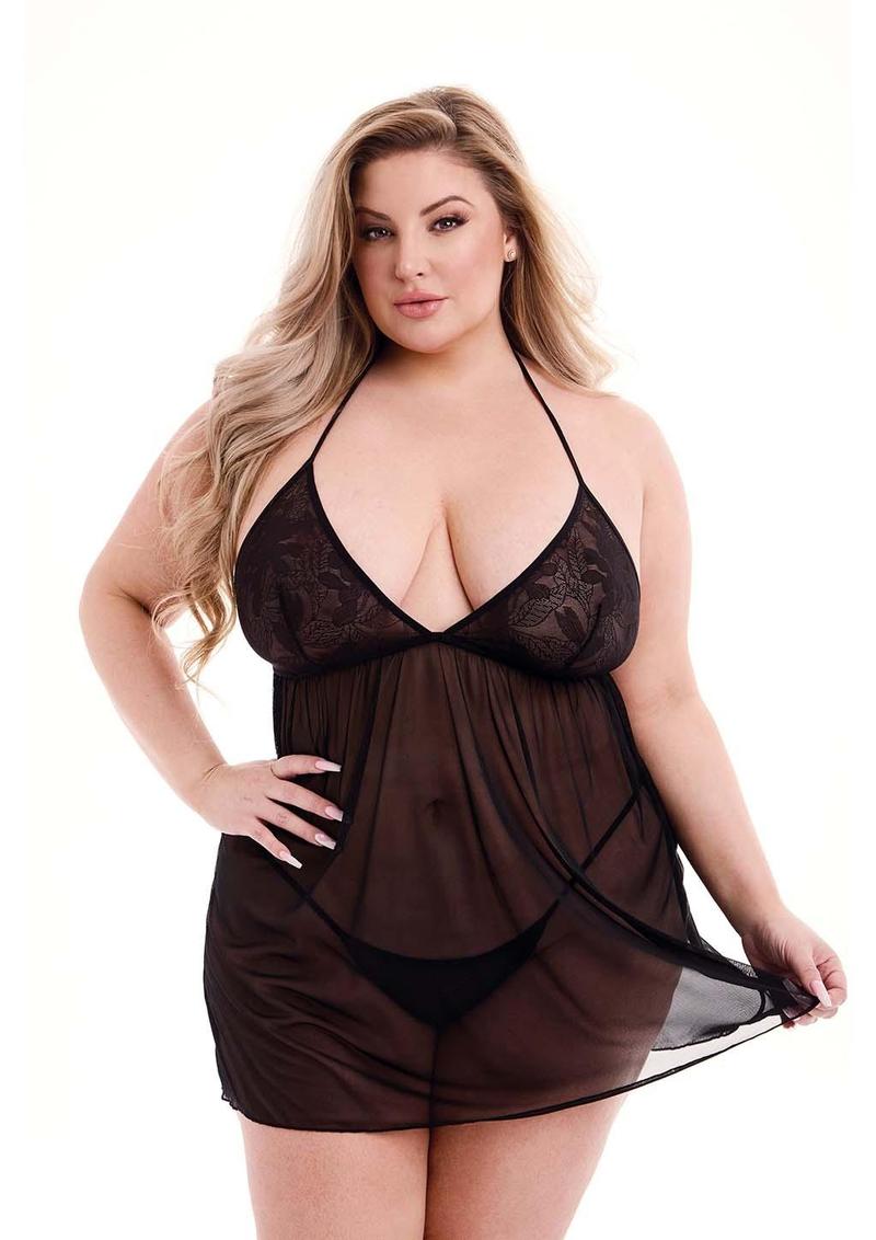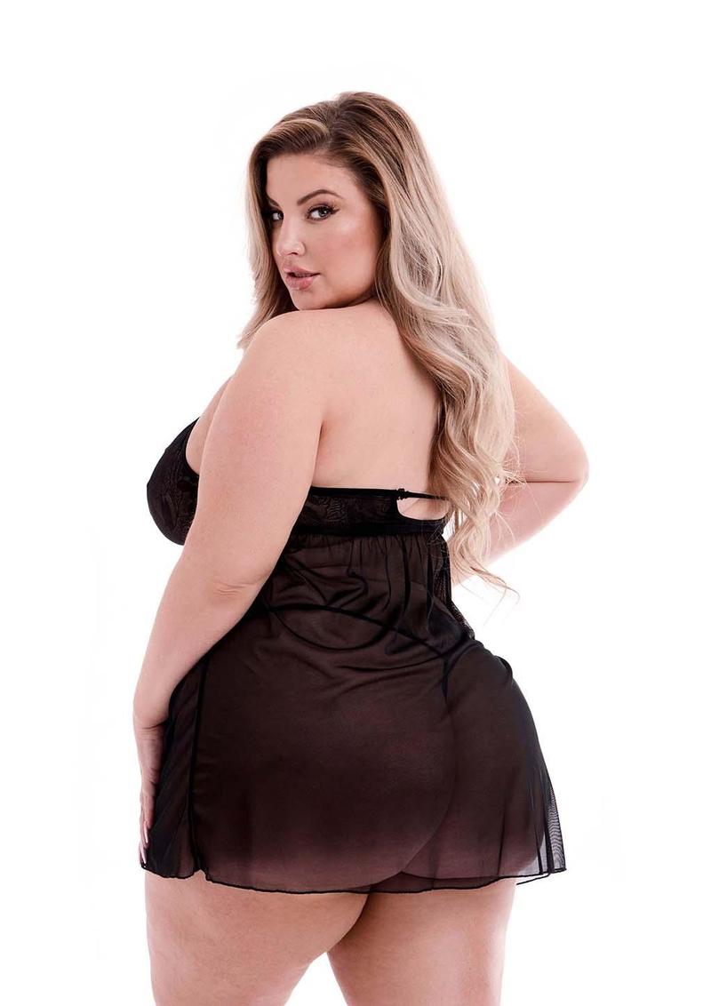 Eco Lace and Mesh Chemise-Blk