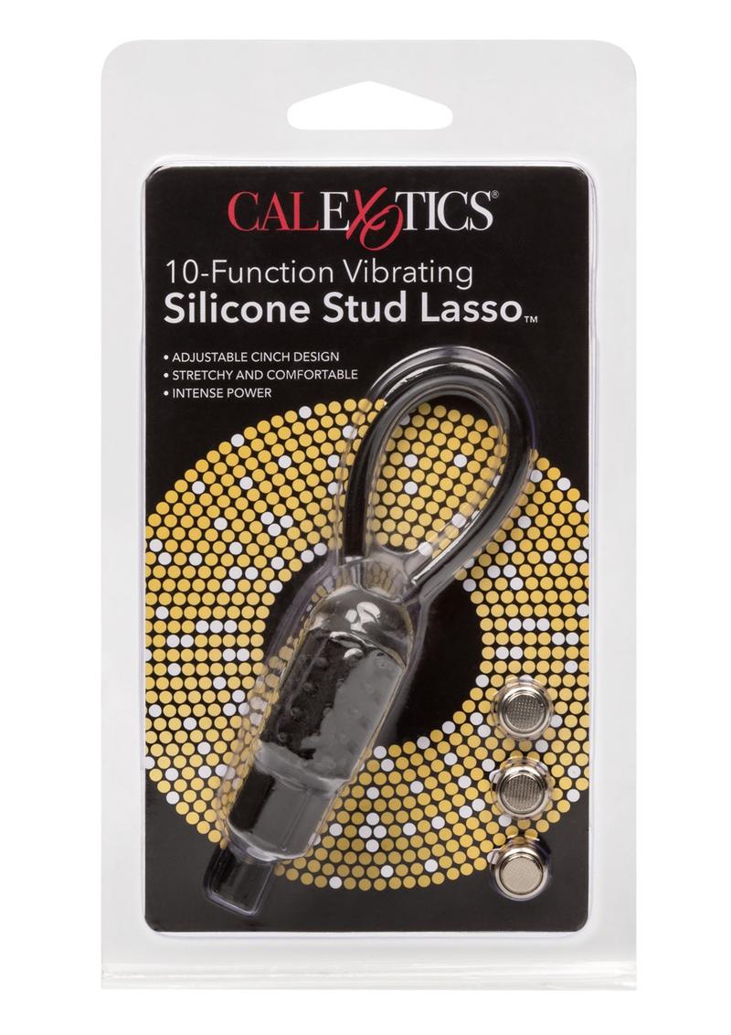 The best selling Lasso is now Silicone with 10 functions. Comfortable adjustable erection enhancer provides extra support and stamina for him. Removable bullet provides 10 intense functions of vibration, pulsation, and escalation for a partner. Nubby Silicone sleeve provides added stimulation. Silicone (lasso, stimulator sleeve) ABS (stimulator). Batteries included (3 watch, 6 included). 5/12.75 cm (adjustable lasso). 2.25 x .75/5.75 cm x 2 cm (bullet).